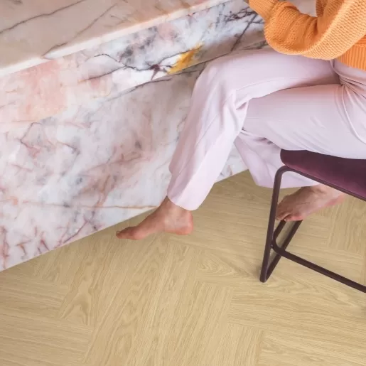 Создаете декор «елочка»? Обычно для этого требуются планки двух разных типов: со сторонами A и B, что означает более медленную и сложную установку. Только не с Альфа Винилом. Наш пол для создания дизайна «елочка» имеет один тип планки, которая защелкивается с обеих сторон, благодаря системе Unizip. Это уникальный, запатентованный замок, проверенный временем. Очень быстро вы сможете собрать красивый узор на вашем полу!